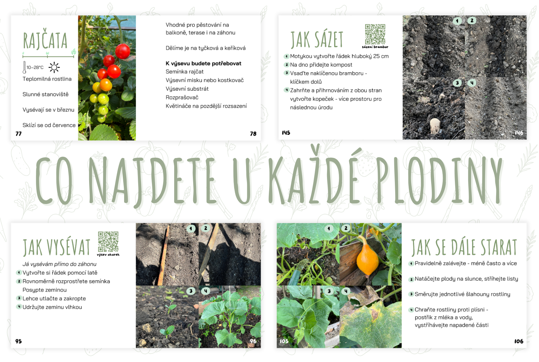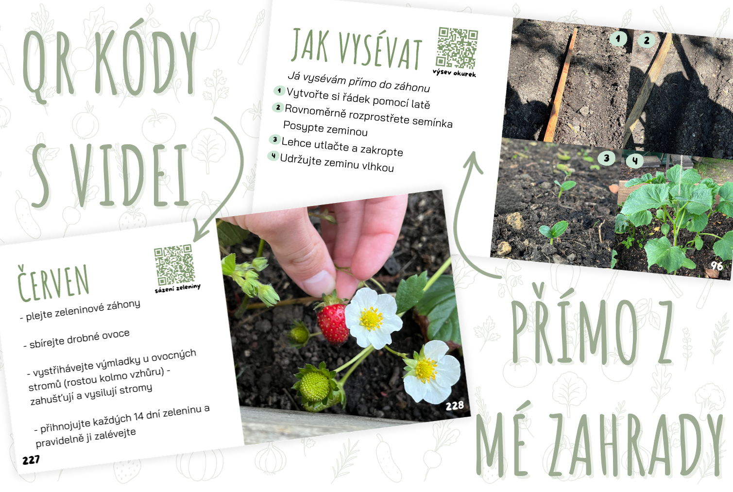 QR kódy v celé knížce s odkazem na videa přímo z mé zahrady